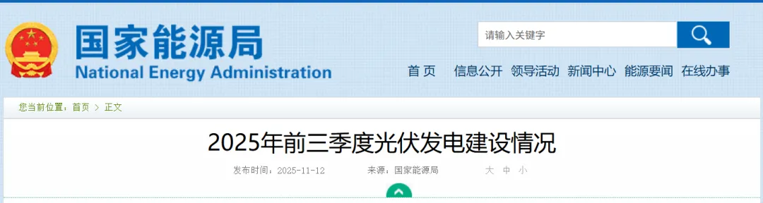 11月12日,國家能源局發布2025年前三季度光伏發電建設情況。